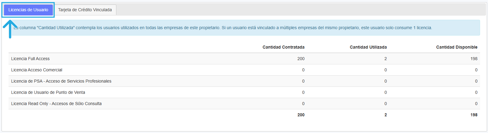 ■ Allí encontrarás el detalle de las licencias que tienes contratadas, las que ya están en uso y las que aún tienes disponibles.