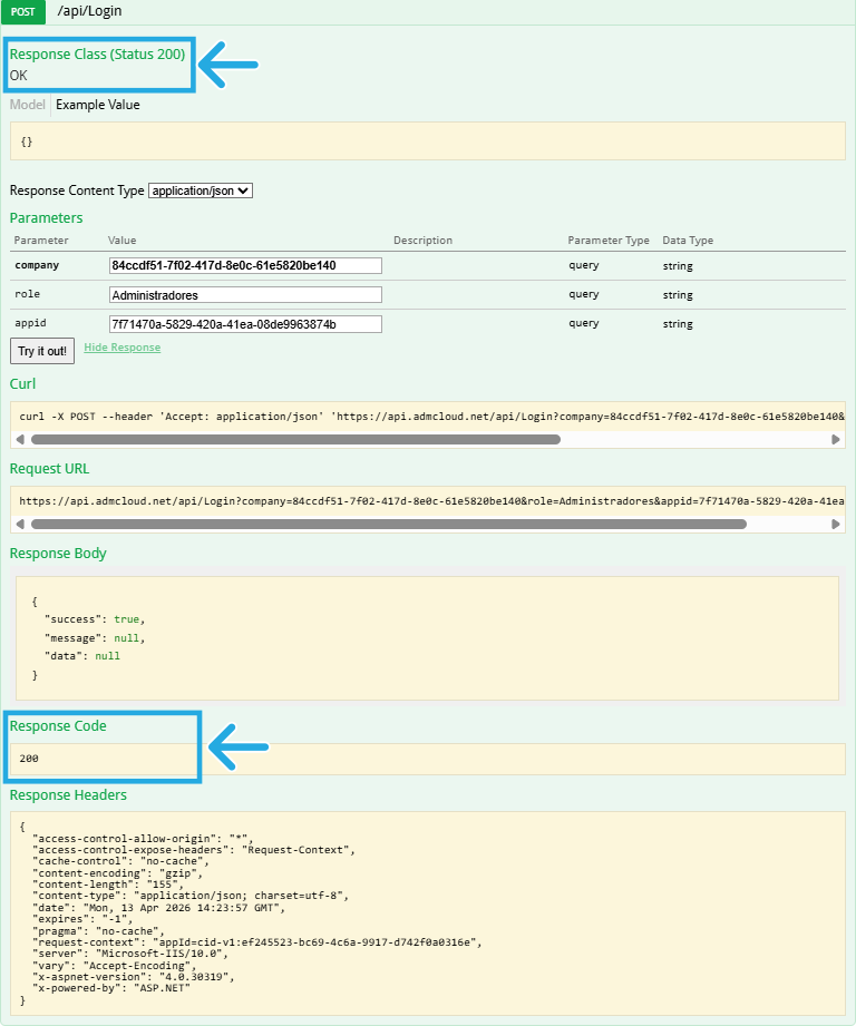 La autenticación básica consiste en utilizar los valores de Company, Role y AppID para iniciar sesión en el API de Adm Cloud y poder consumir sus servicios.